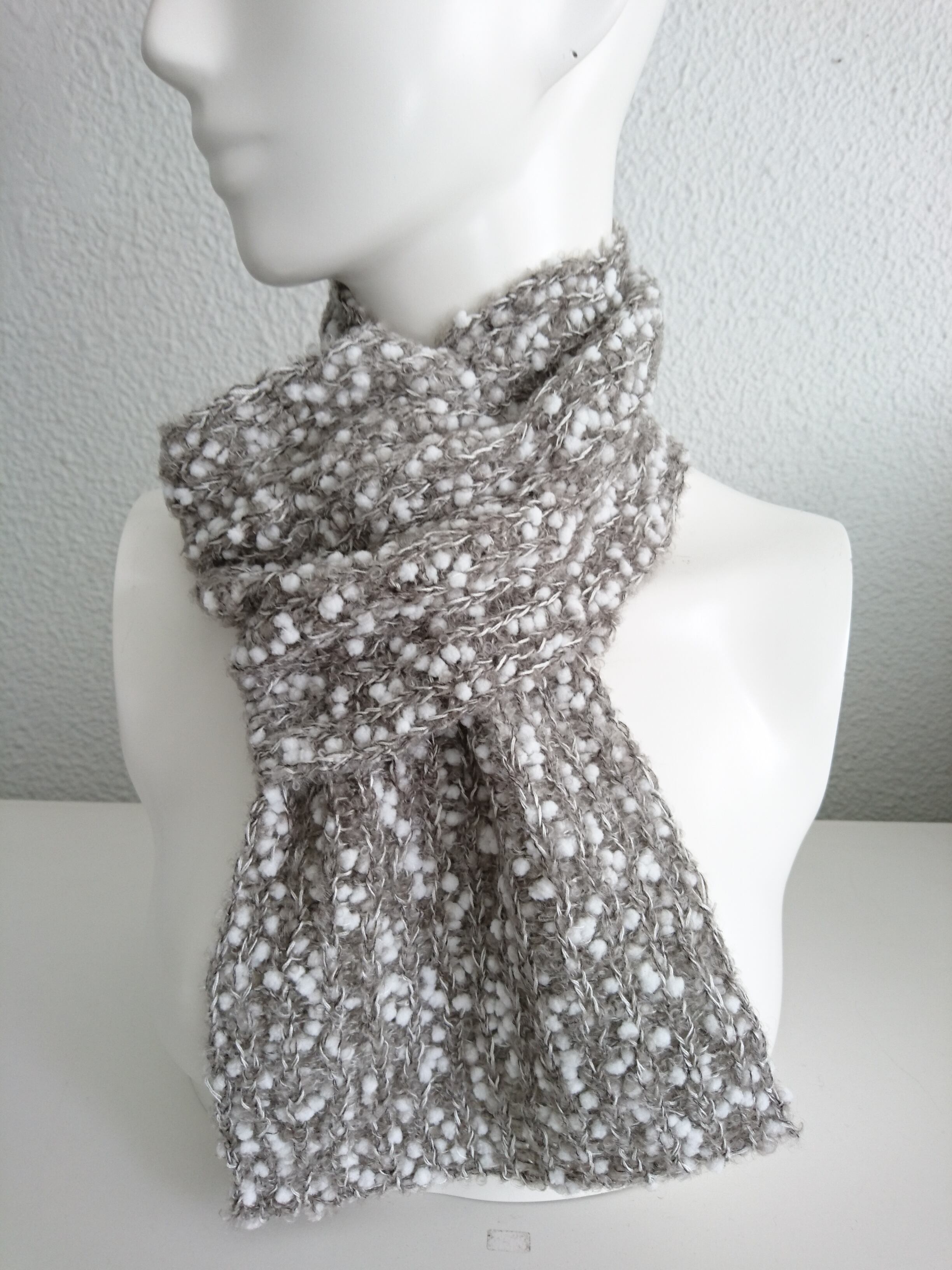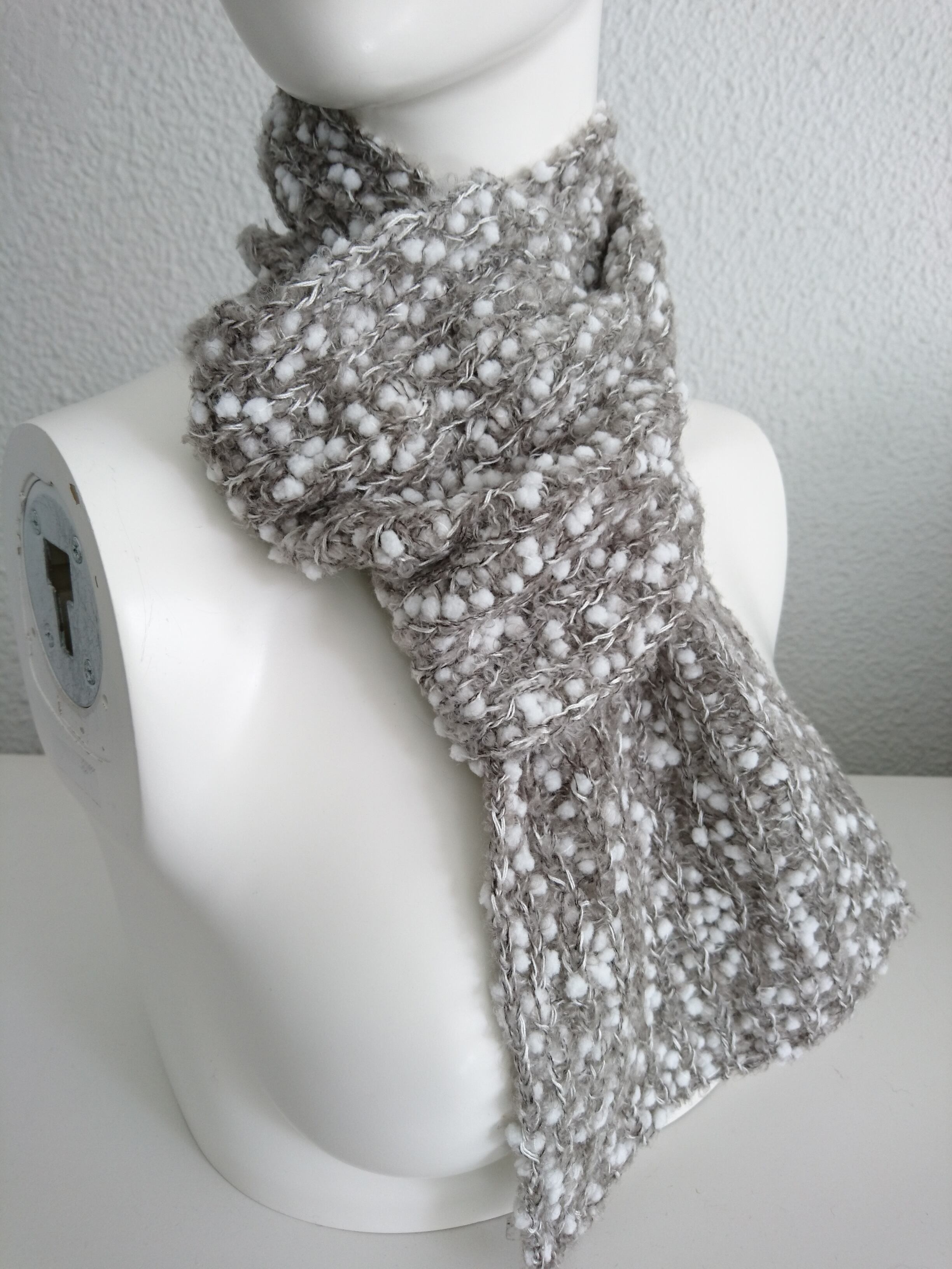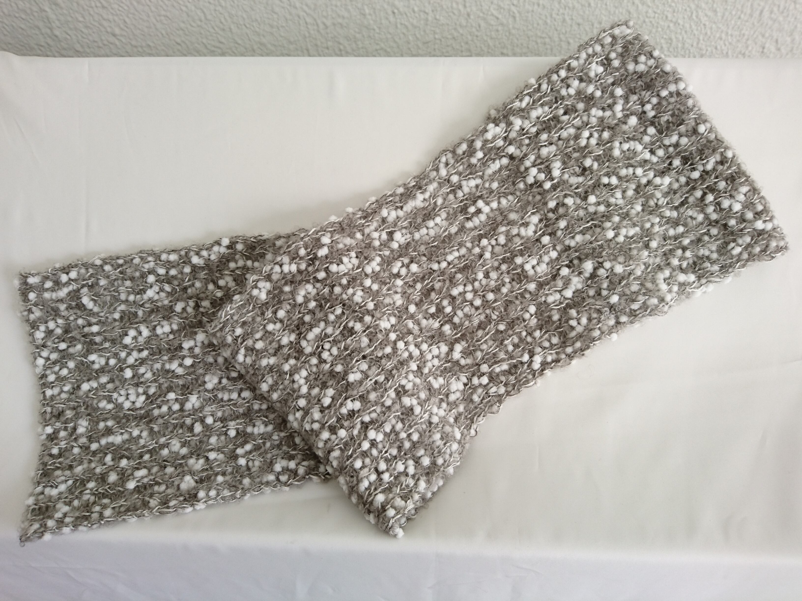 家庭用編み機で丁寧に編まれたニットのミニストールです。