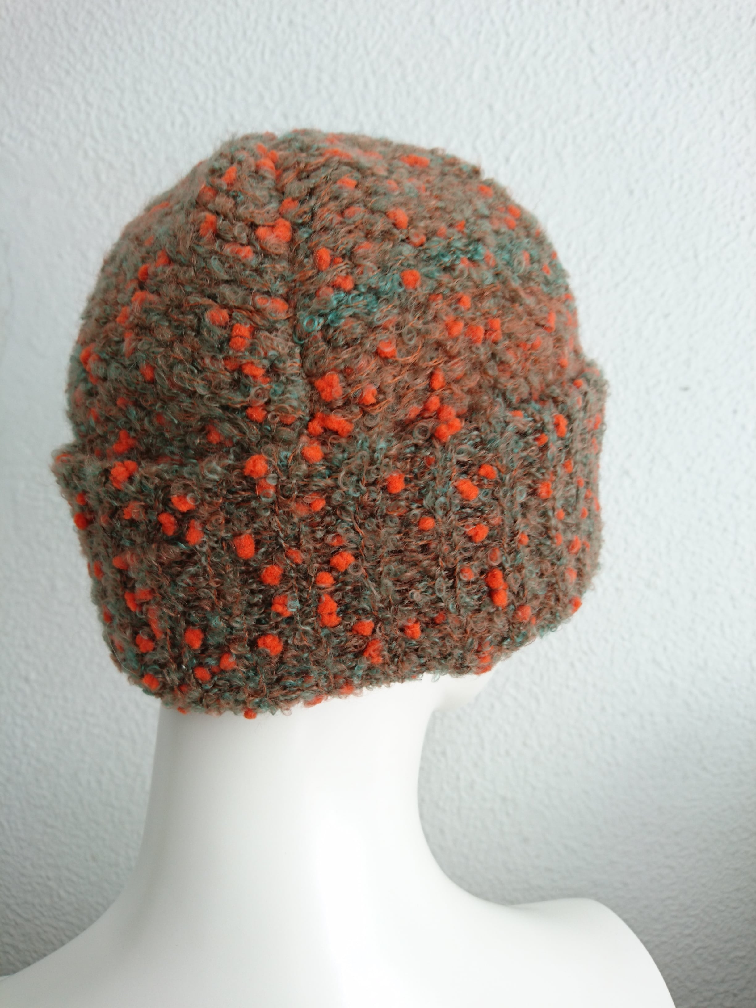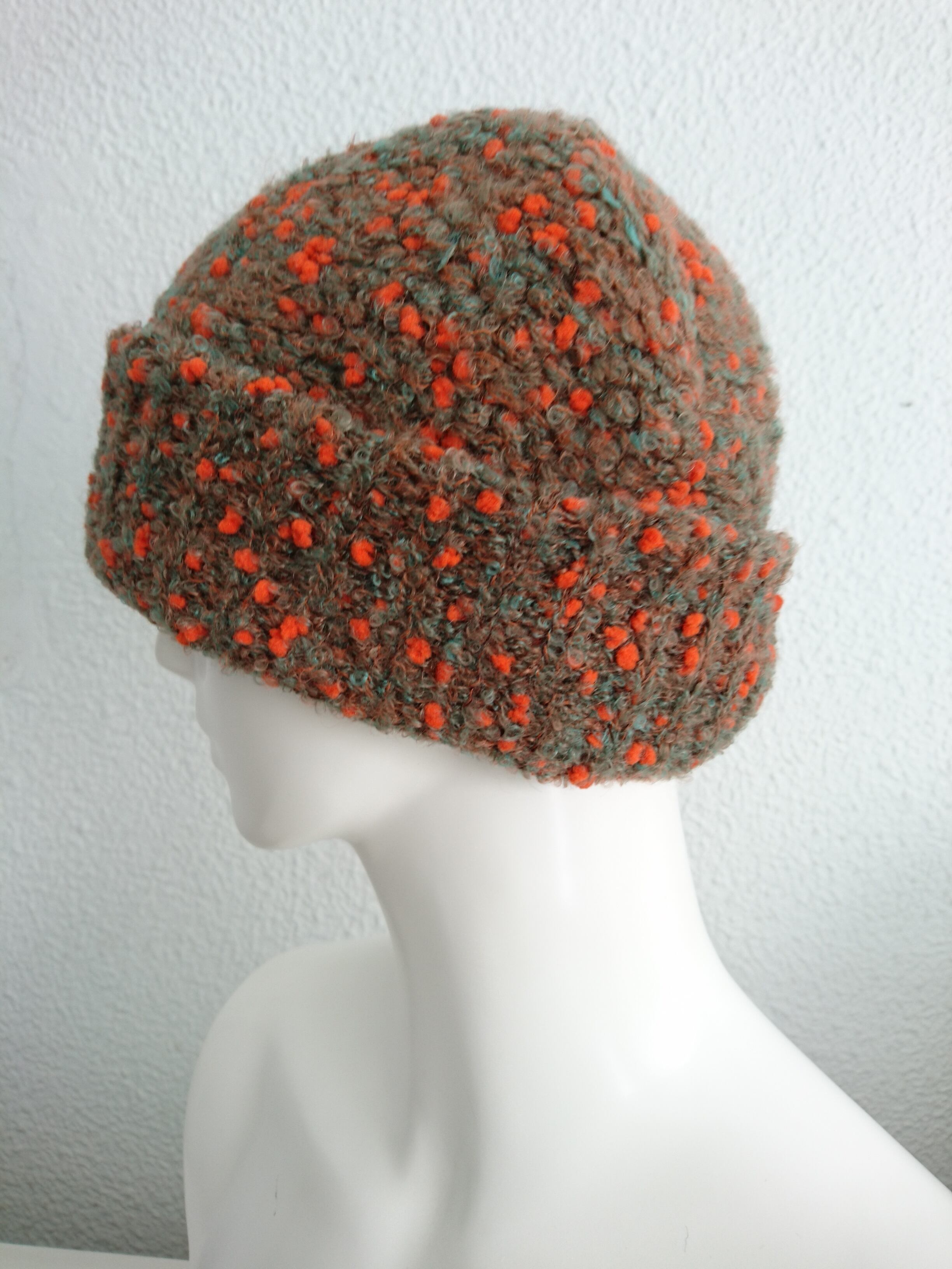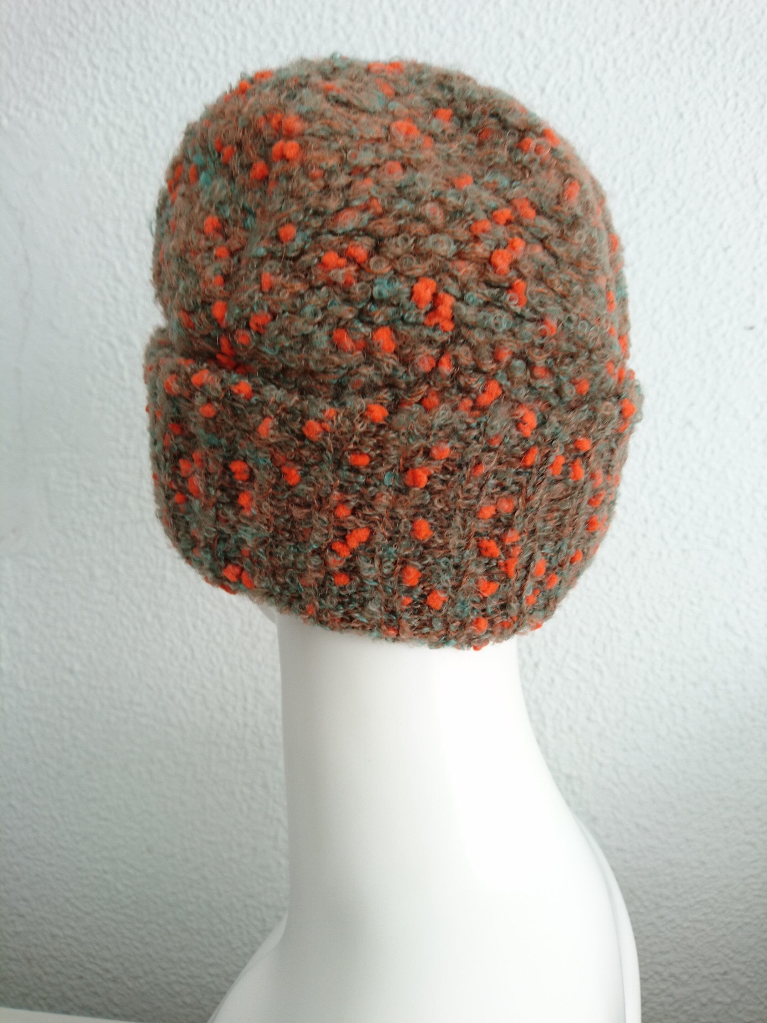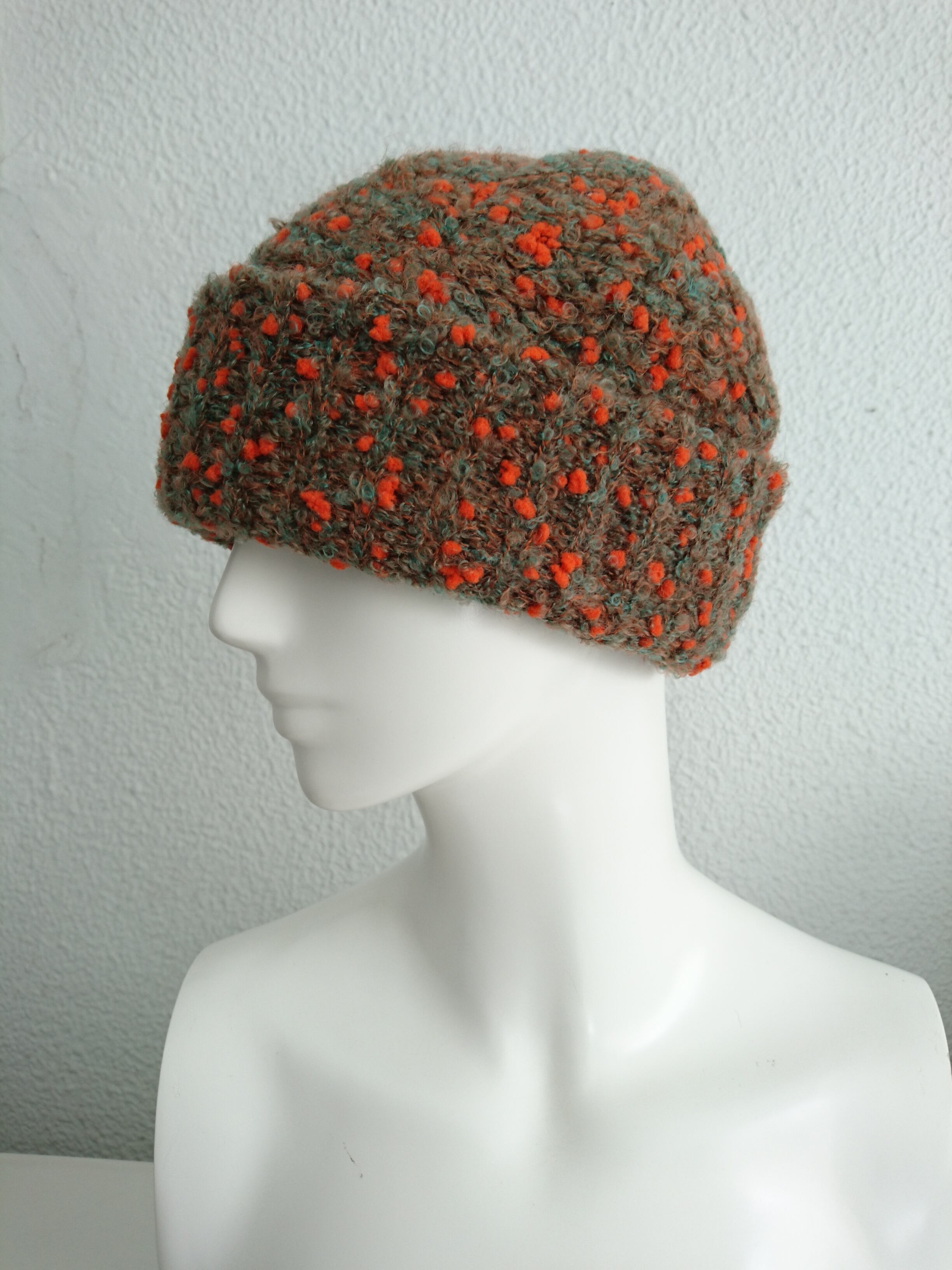 家庭用編み機で丁寧に編まれたニットの帽子です。