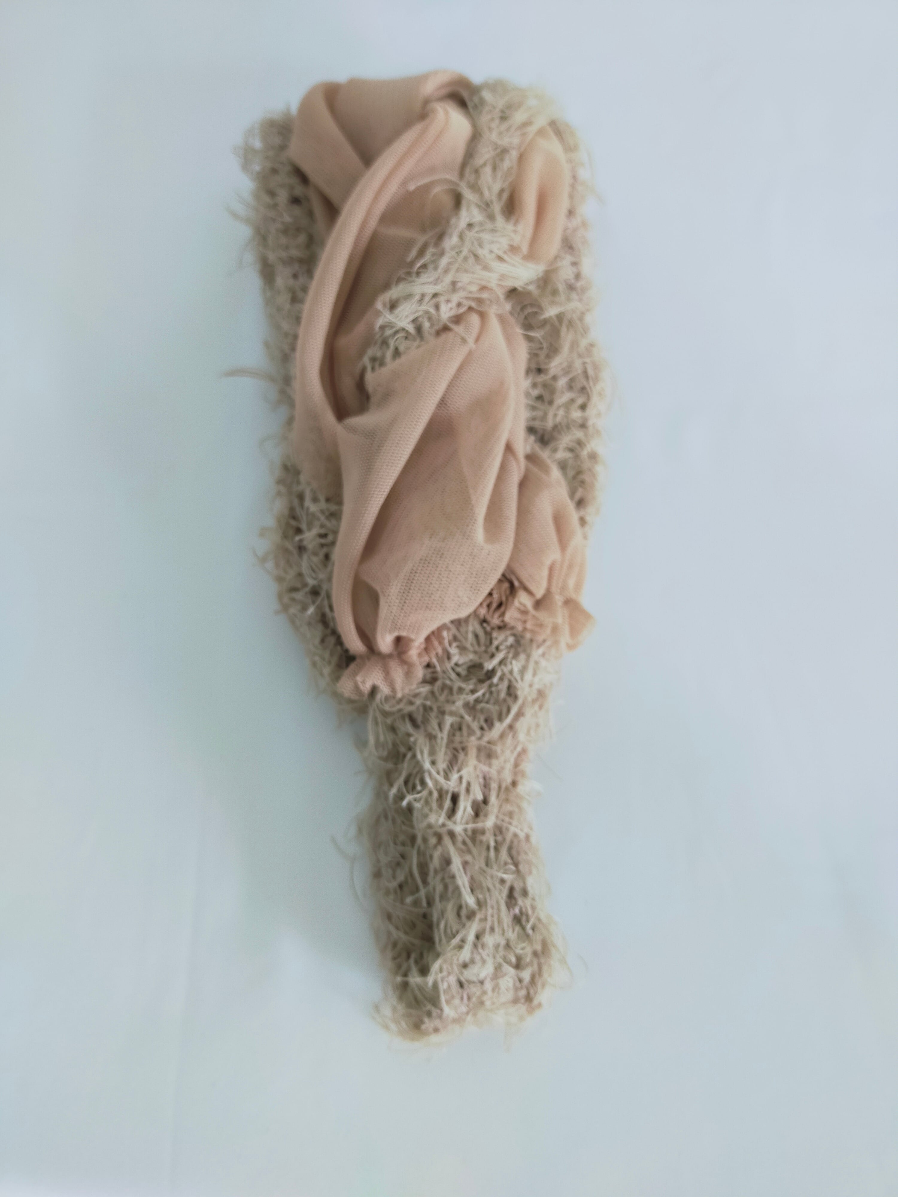 コットンシャギー糸とチュール生地の異素材の組み合わせがお洒落で、なかなか出会えない逸品だと思います。