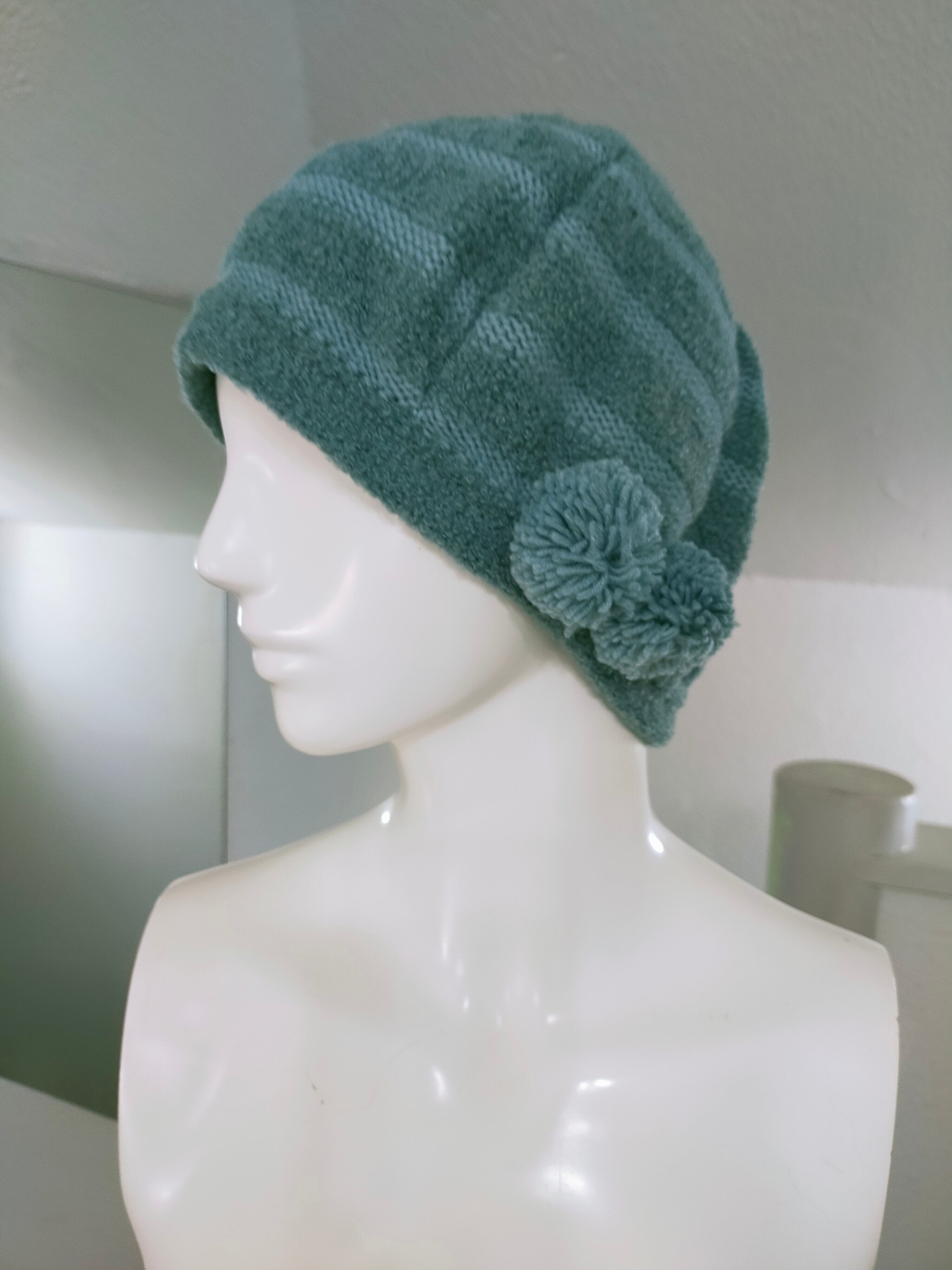 家庭用編み機で丁寧に編まれたニットの帽子です。