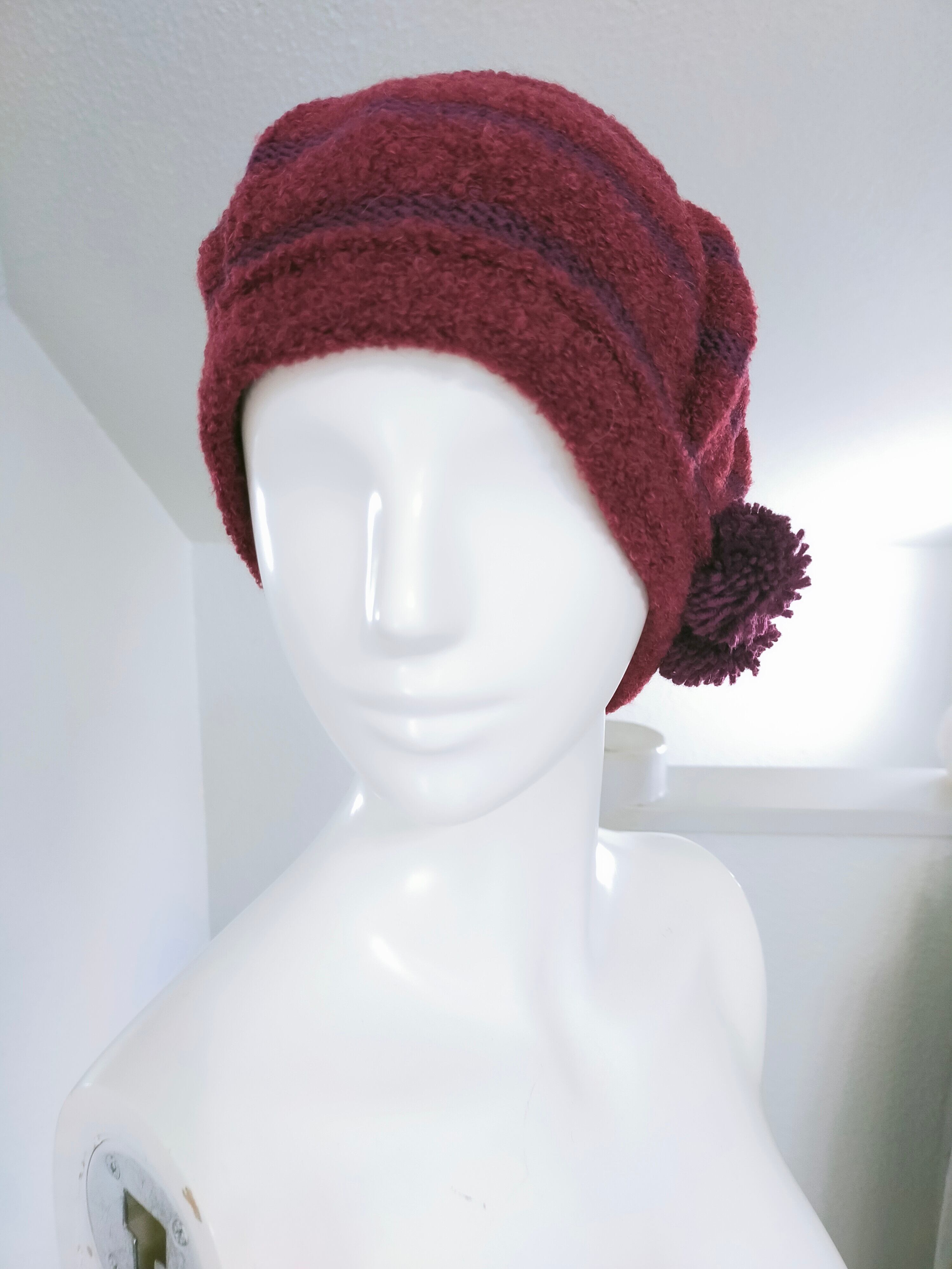 家庭用編み機で丁寧に編まれたニットの帽子です。