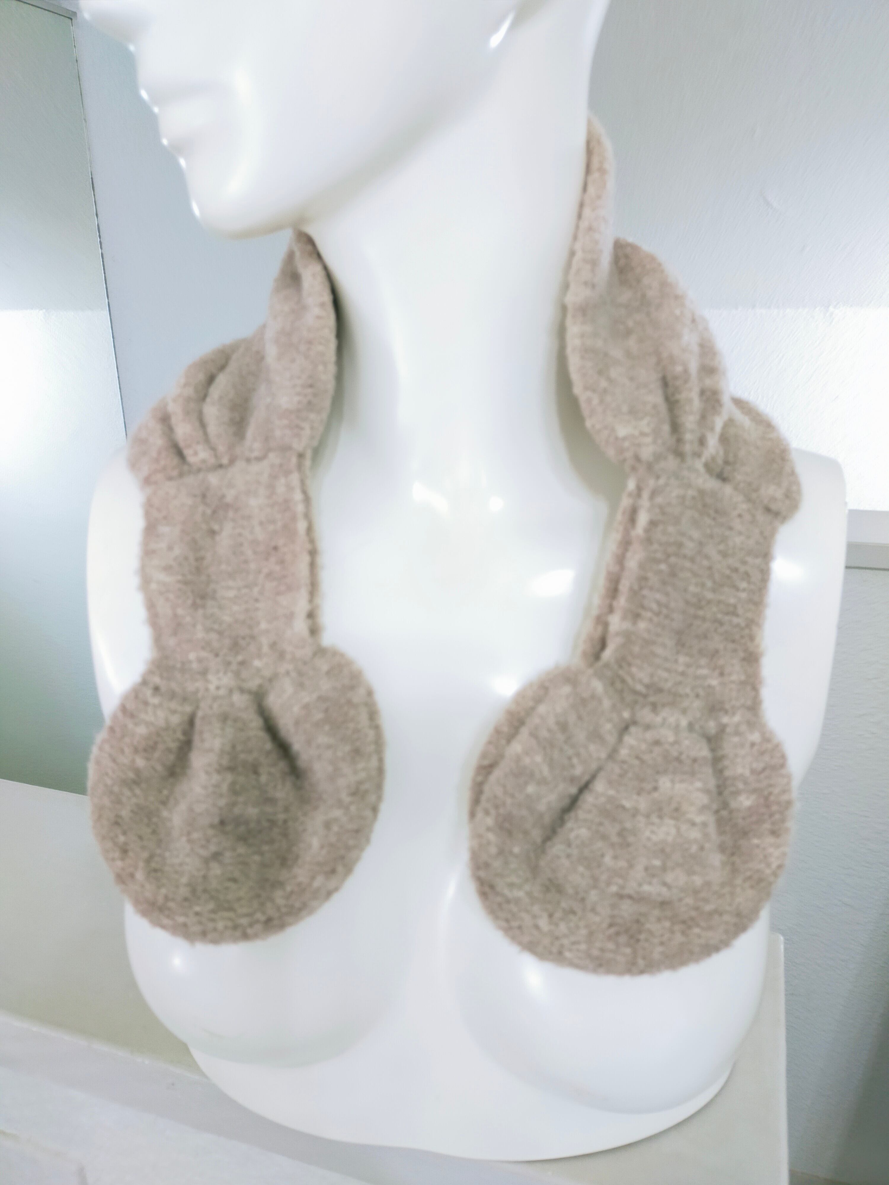 中央部分が輪になっているので、通すだけで着けることができて、お首にしっかりとフィットしますので、小さいのに首から胸元まで暖かくて冬の味方です!