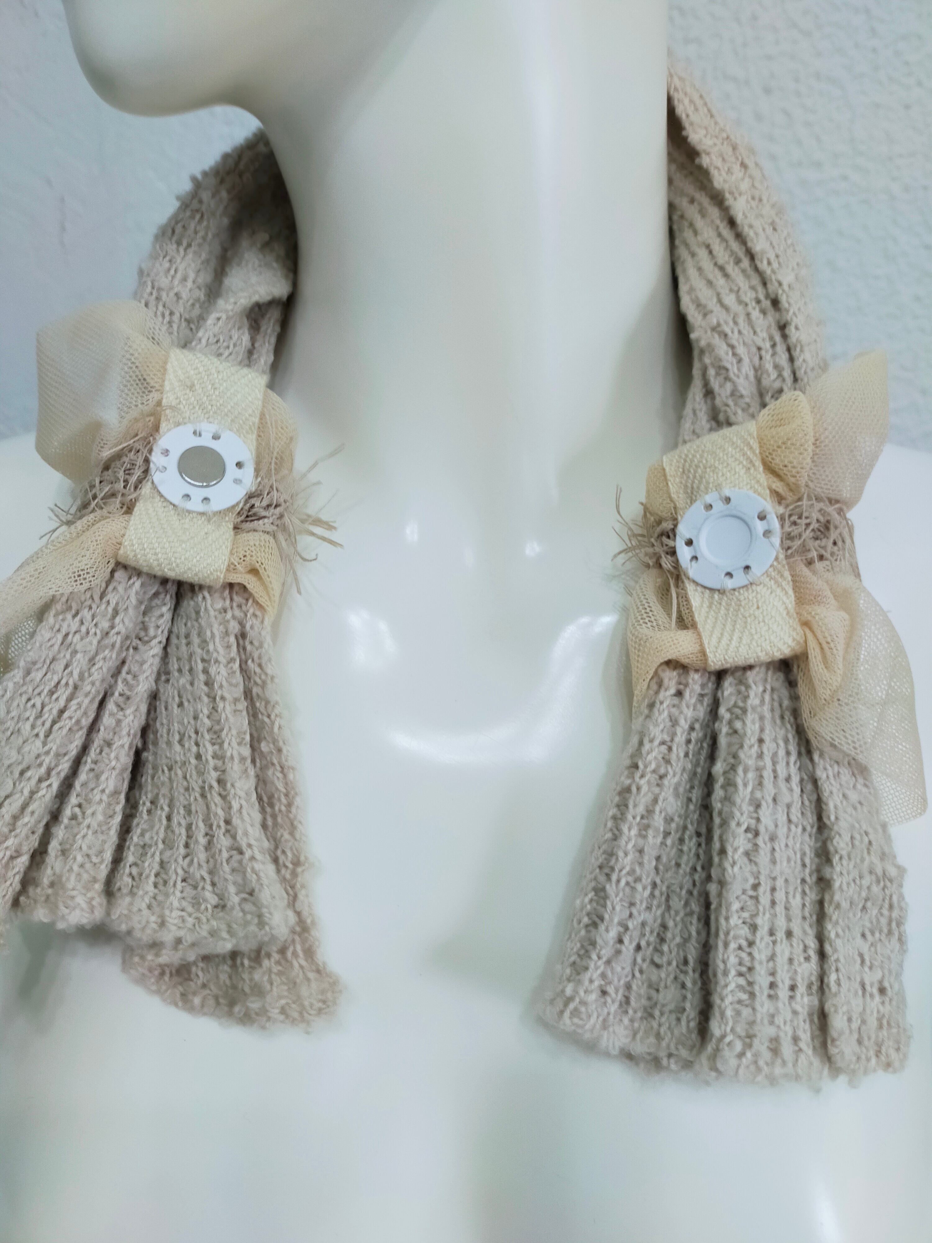 マグネットでワンタッチ コットン簡単ミニマフラー ライトベージュ