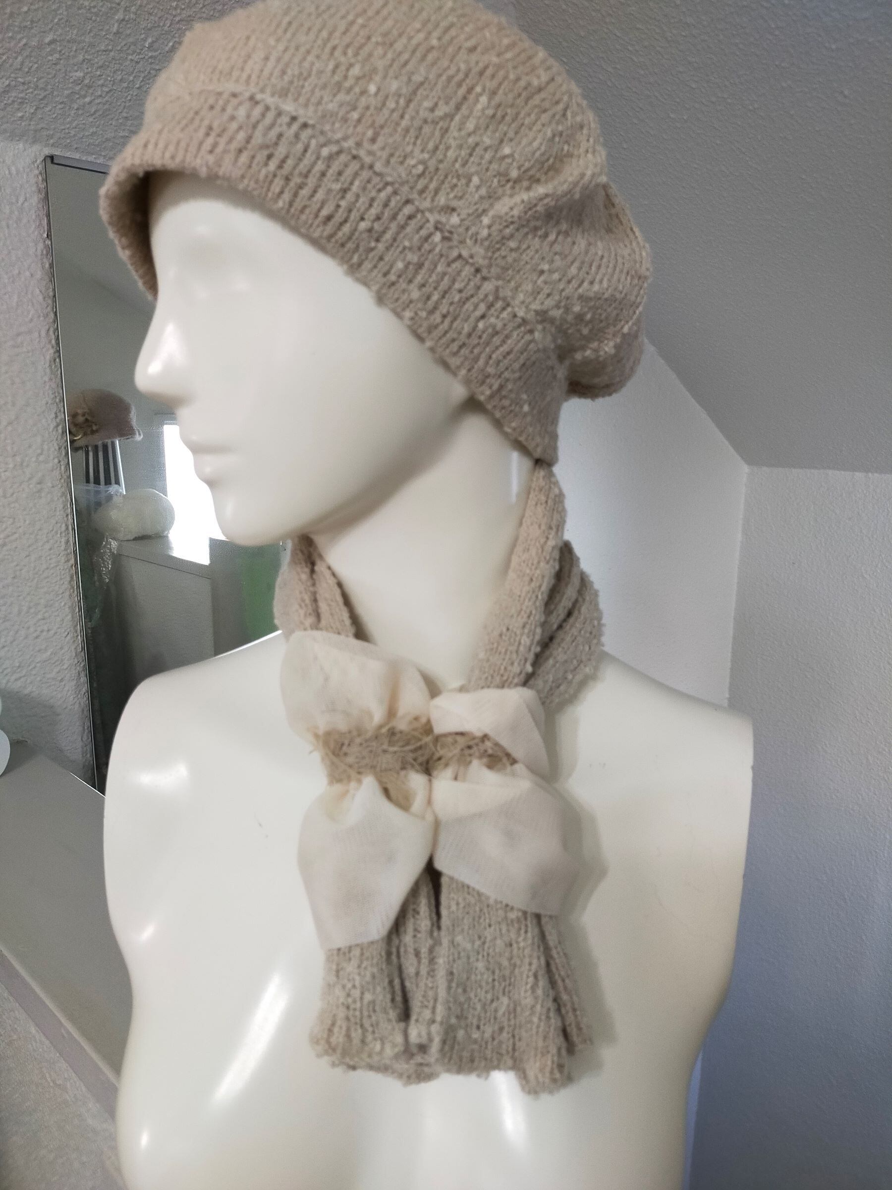 飾りの部分は取り外し可能です。セットで被れる同じ素材のニット帽子もございます