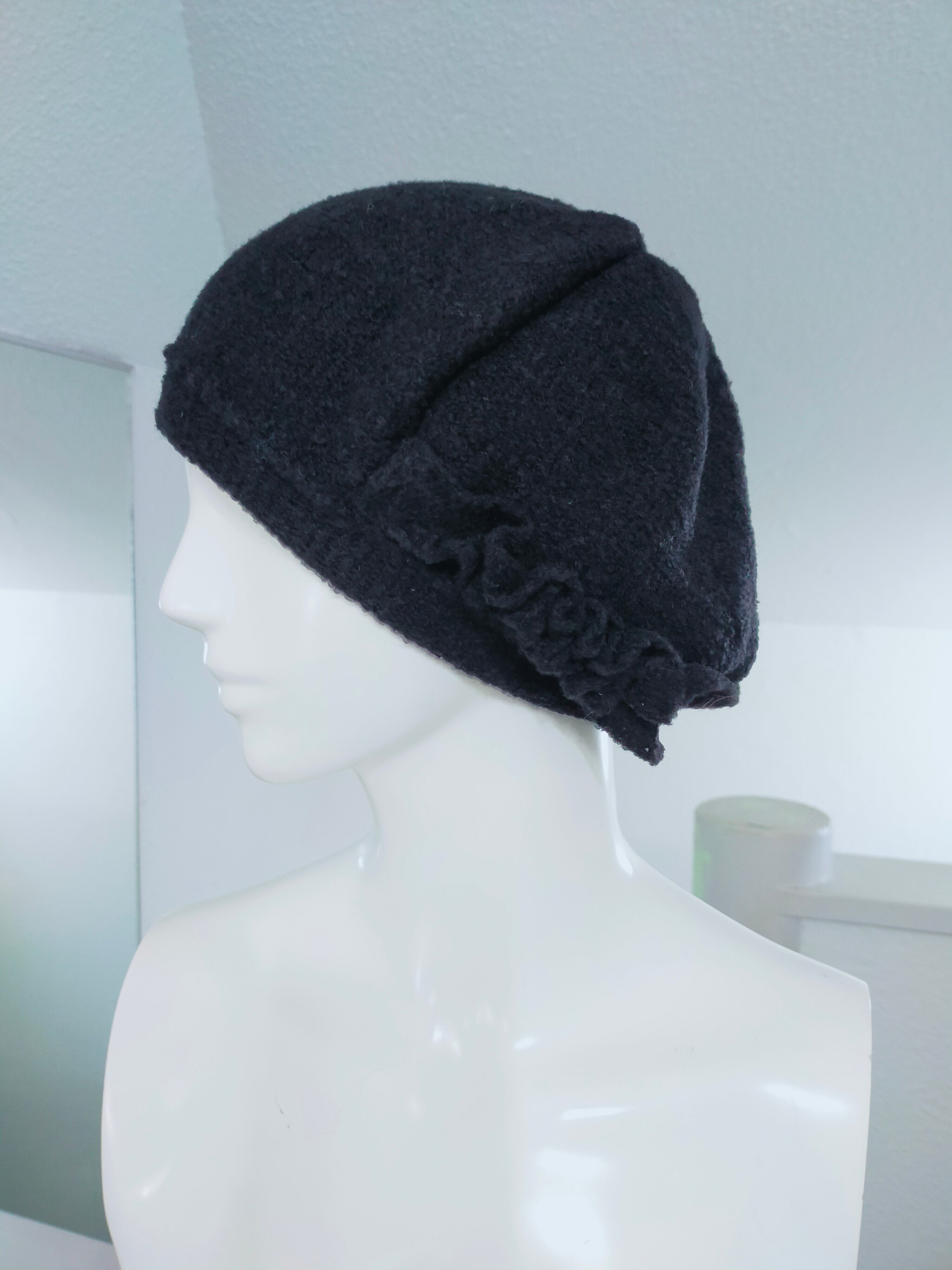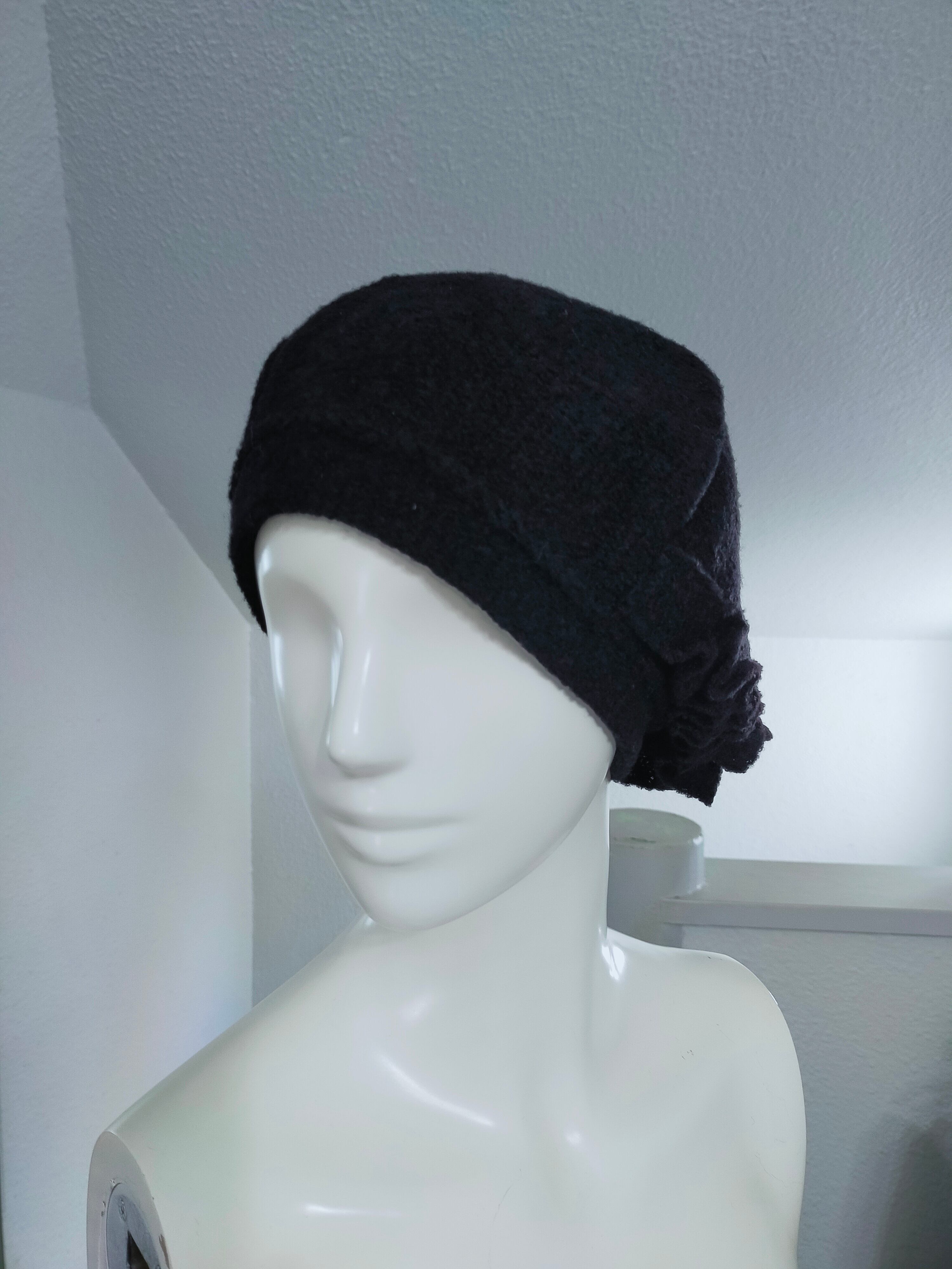 家庭用編み機で丁寧に編まれたニットの帽子です。